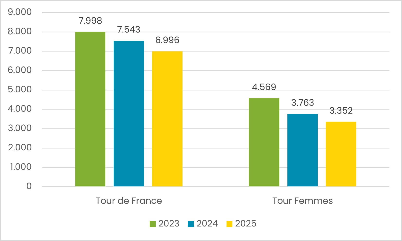 Met de uitzendingen van de Tour de France Femmes zijn dit jaar bijna 3,4 miljoen mensen bereikt. Dat ligt lager dan de bijna 3,8 miljoen bereikten vorig jaar. Belangrijke kanttekening daarbij is dat de NOS de dag-uitzendingen van de Tour Femmes dit jaar pas heeft opgepakt na afloop van de Tour van de mannen waardoor er minder uitzendingen waren en dus minder bereik.