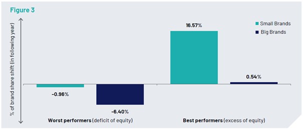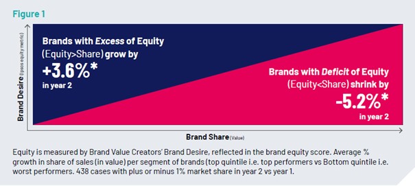 Ook System1 en Effie laten in hun effectiviteitsonderzoek zien dat emotionele merkvoorkeur een sterke voorspellende indicator is voor toekomstig marktaandeel, los van de huidige merk- of budgetomvang.