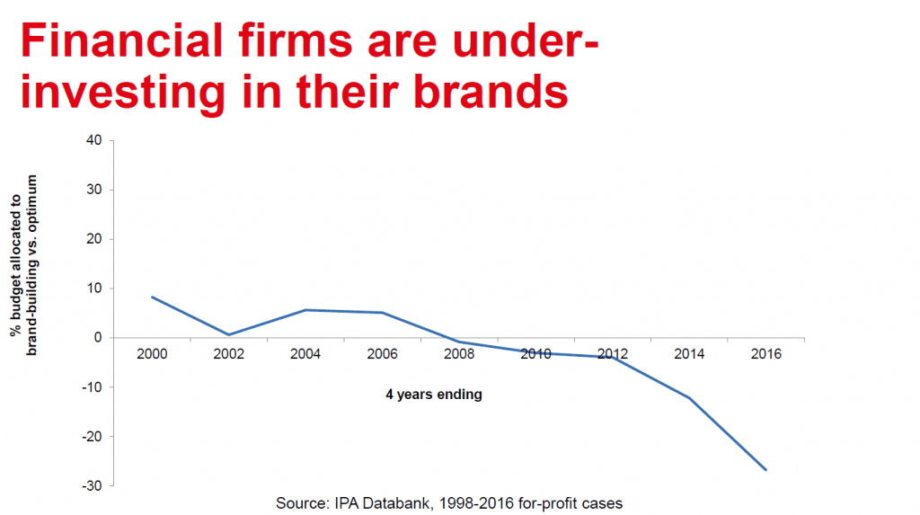 - Doordat financiële diensten minder hoeven uit te geven aan sales activation, kunnen ze een groter deel van hun budget besteden aan brand building.