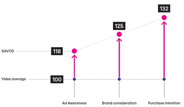 Gemiddeld scoren SAVOD-campagnes hoger op merkimpact dan andere videokanalen zoals lineaire TV, YouTube of video in het algemeen. Deze resultaten tonen aan dat innovaties binnen Total Video niet alleen nieuwe kijkvormen mogelijk maken, maar ook zorgen voor meer effectiviteit voor adverteerders.